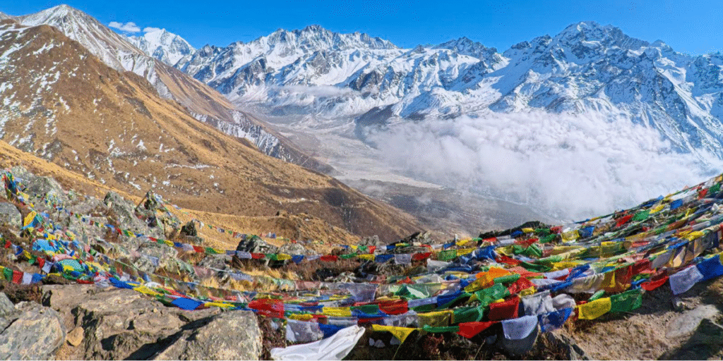 The third lake (Dudh Pokhari) offers the most accessible EBC photo spots with stunning trekking photos potential. The impossibly blue water contrasts dramatically with surrounding browns and whites of moraine and glacier. These himalaya captures showcase a different perspective from the standard EBC route. The nearby Gokyo Ri (5,357 meters) provides an alternative view from Mt Everest peak that includes four of the world’s six tallest mountains: Everest, Lhotse, Makalu, and Cho Oyu. This viewpoint rivals Kala Patthar for photography ebc excellence while offering unique compositional elements.